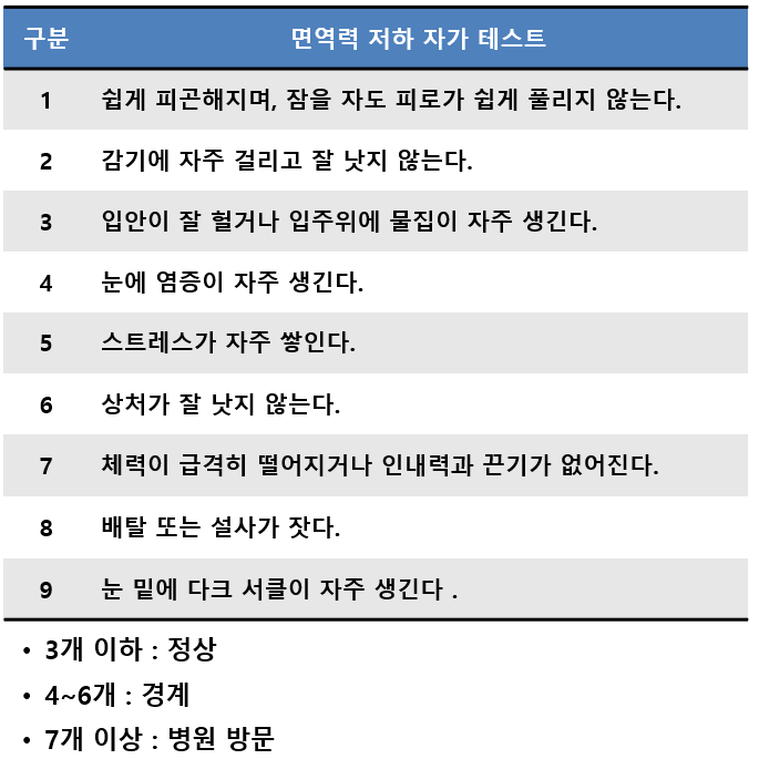 면역력 감소로 인한 질병